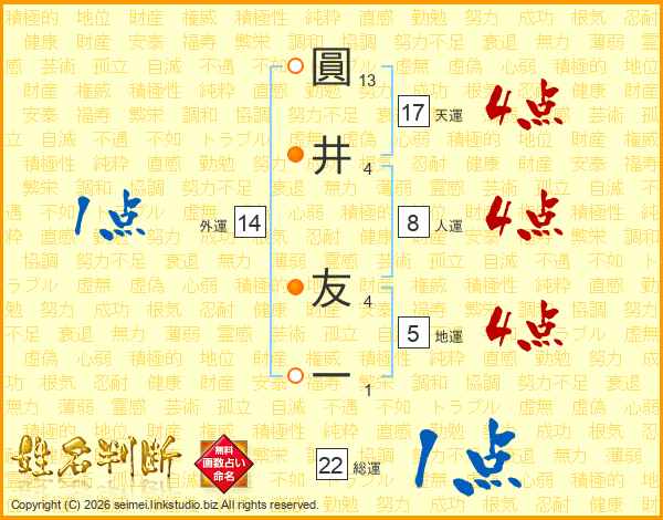 圓井友一さんの天運は17画の4点!