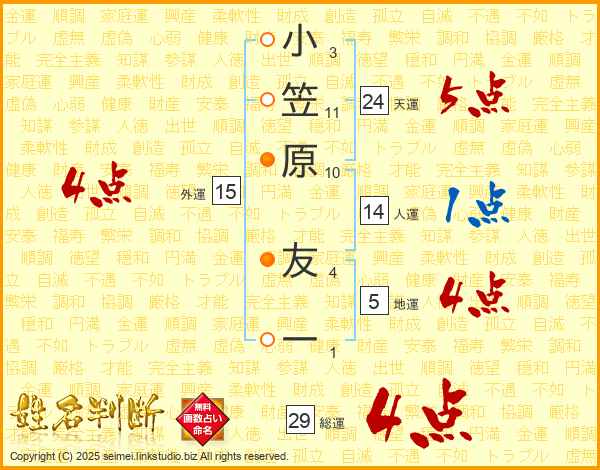 小(3画)笠(11画)原(10画) 友(4画)一(1画)