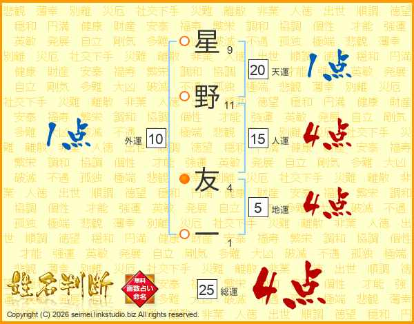 星野友一さんの総運は25画の4点!