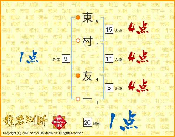 東村友一さんの人運は11画の4点!