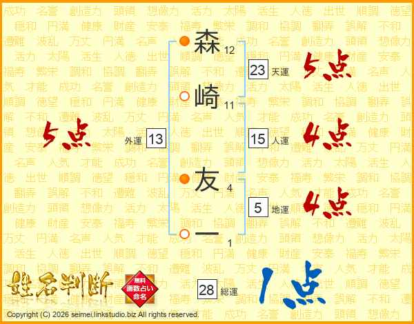 森崎友一さんの外運は13画の5点!