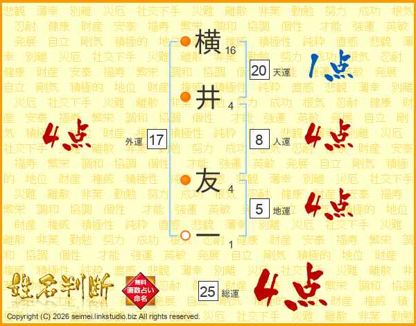 横井友一さんの総運は25画の4点!