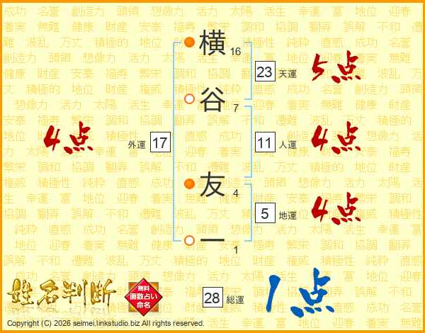横谷友一さんの総運は28画の1点!