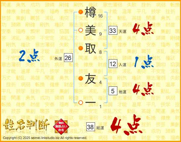 樽(16画)美(9画)取(8画) 友(4画)一(1画)