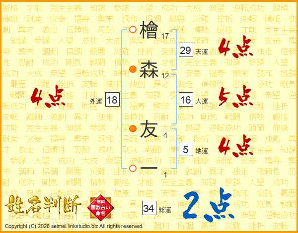檜森友一さんの天運は29画の4点!