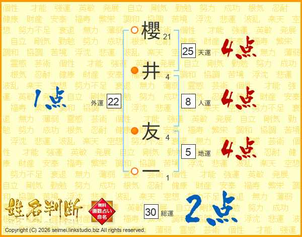 櫻井友一さんの天運は25画の4点!
