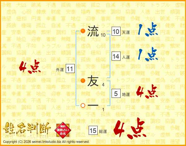 流友一さんの総運は15画の4点!
