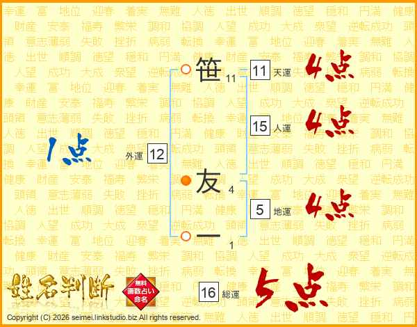 笹友一さんの天運は11画の4点!