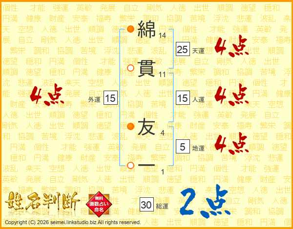綿貫友一さんの天運は25画の4点!