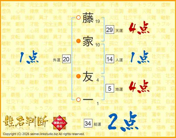 藤家友一さんの総運は34画の2点!