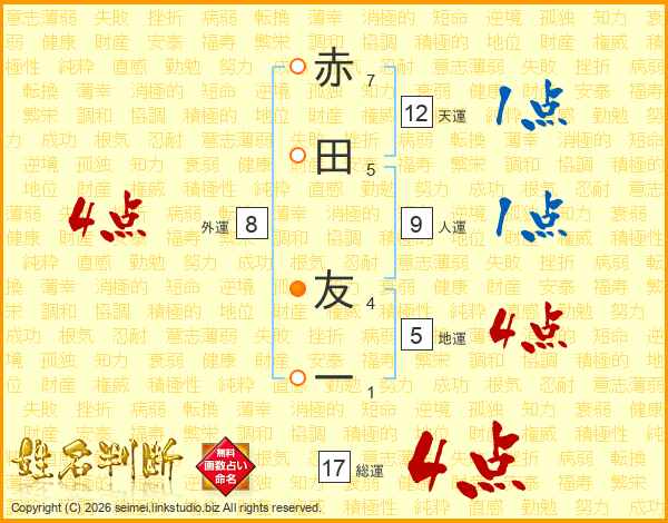 赤田友一さんの総運は17画の4点!