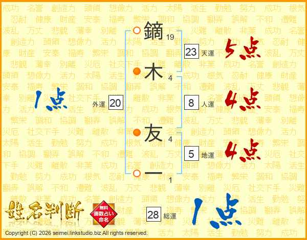 鏑木友一さんの総運は28画の1点!