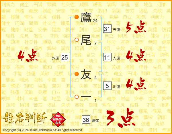 鷹尾友一さんの天運は31画の5点!