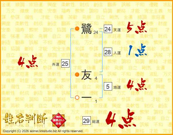鷺友一さんの総運は29画の4点!