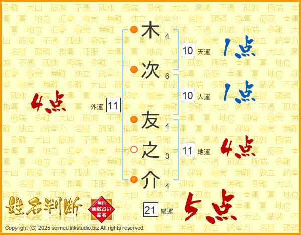 木(4画)次(6画) 友(4画)之(3画)介(4画)
