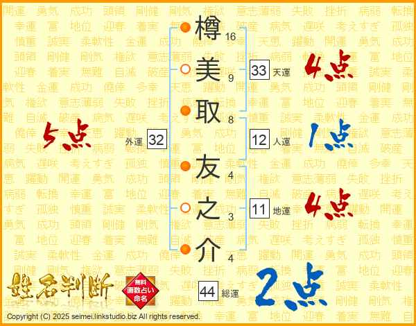 樽(16画)美(9画)取(8画) 友(4画)之(3画)介(4画)