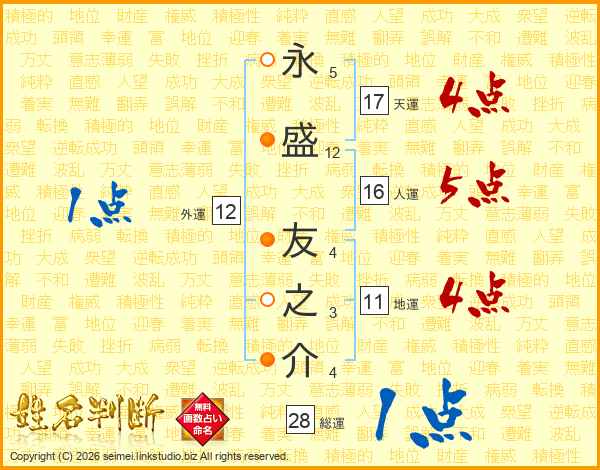 永(5画)盛(12画) 友(4画)之(3画)介(4画)