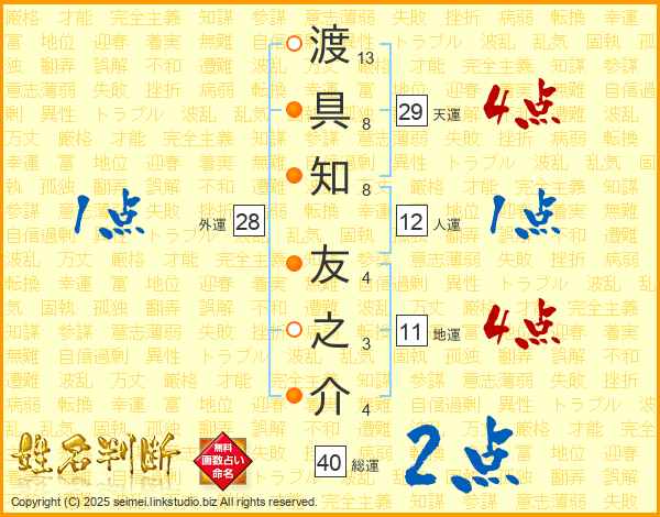 渡(13画)具(8画)知(8画) 友(4画)之(3画)介(4画)