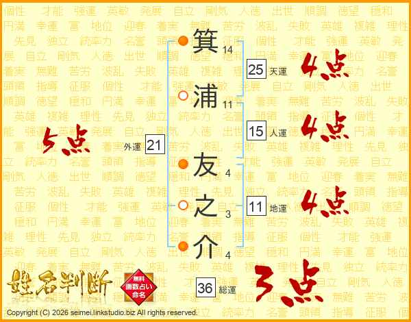 箕浦友之介さんの天運は25画の4点!