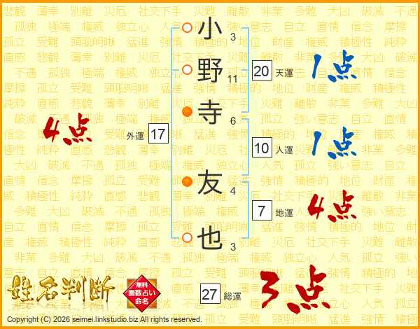小野寺友也さんの外運は17画の4点!