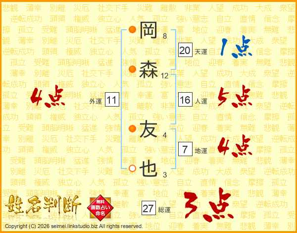 岡森友也さんの地運は7画の4点!