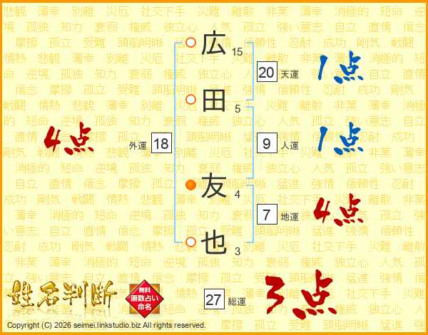 広田友也さんの地運は7画の4点!