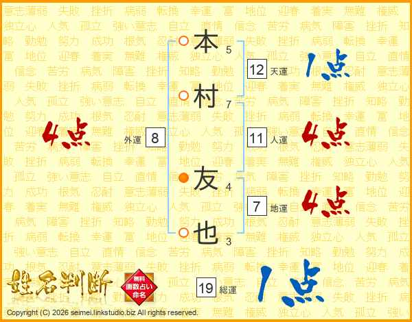 本村友也さんの人運は11画の4点!