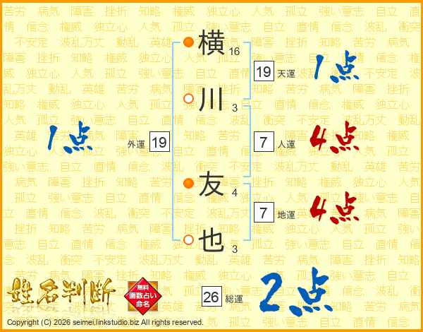 横川友也さんの人運は7画の4点!