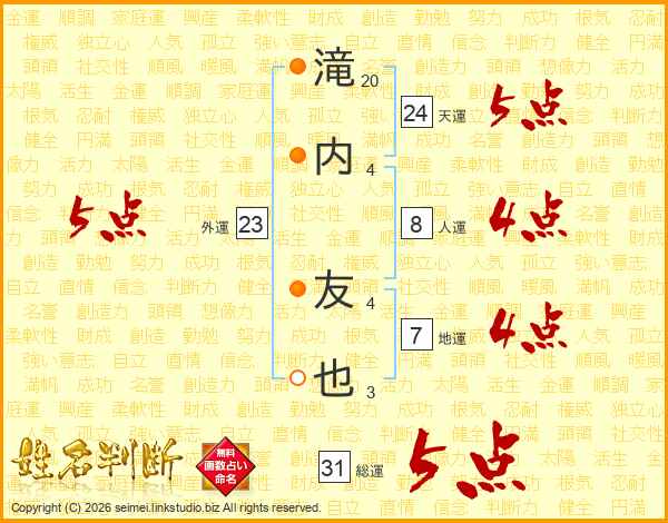 滝内友也さんの総運は31画の5点!