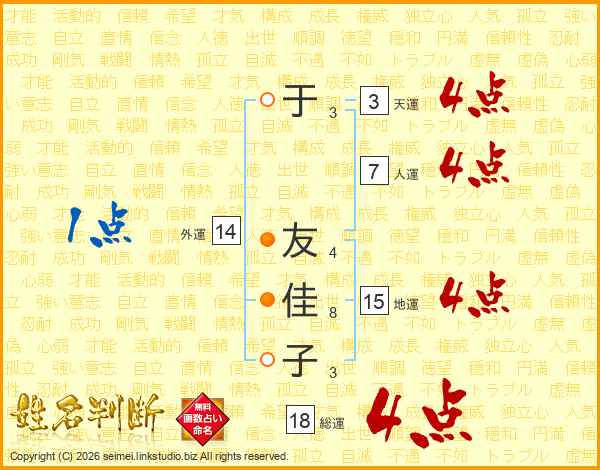 于友佳子さんの総運は18画の4点!