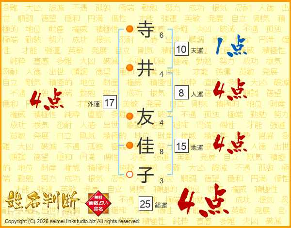 寺(6画)井(4画) 友(4画)佳(8画)子(3画)