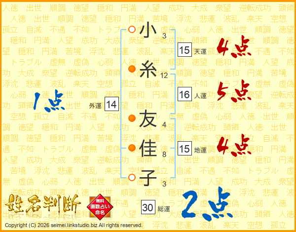 小糸友佳子さんの総運は30画の2点!