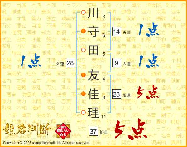 川守田友佳理さんの総運は37画の5点!