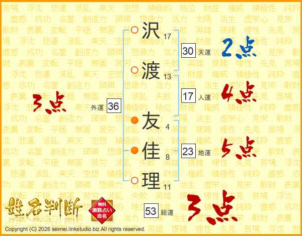沢渡友佳理さんの総運は53画の3点!