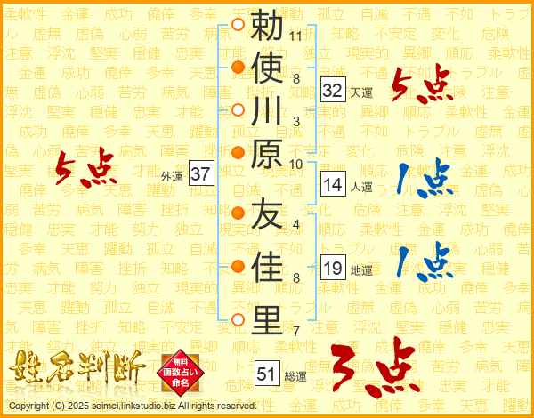 勅使川原友佳里さんの外運は37画の5点!