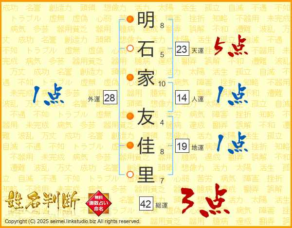 明石家友佳里さんの総運は42画の3点!