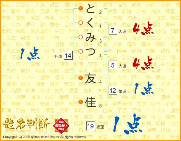 とくみつ友佳さんの外運は14画の1点!