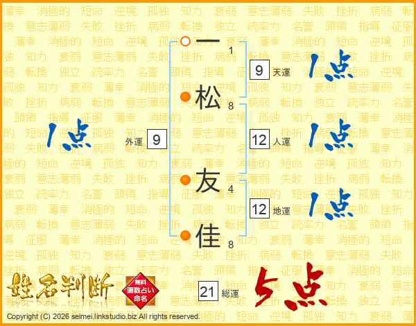 一松友佳さんの総運は21画の5点!