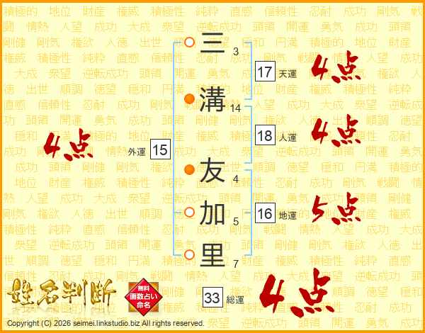 三溝友加里さんの総運は33画の4点!