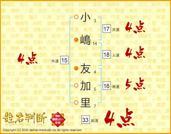 小嶋友加里さんの総運は33画の4点!