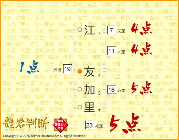 江友加里さんの総運は23画の5点!