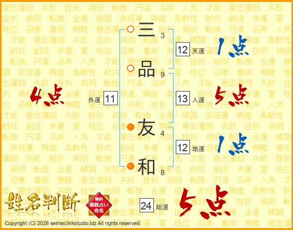 三品友和さんの総運は24画の5点!