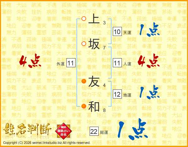 上坂友和さんの人運は11画の4点!