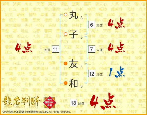 丸子友和さんの総運は18画の4点!