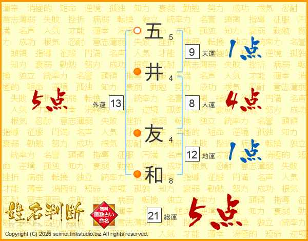 五井友和さんの総運は21画の5点!