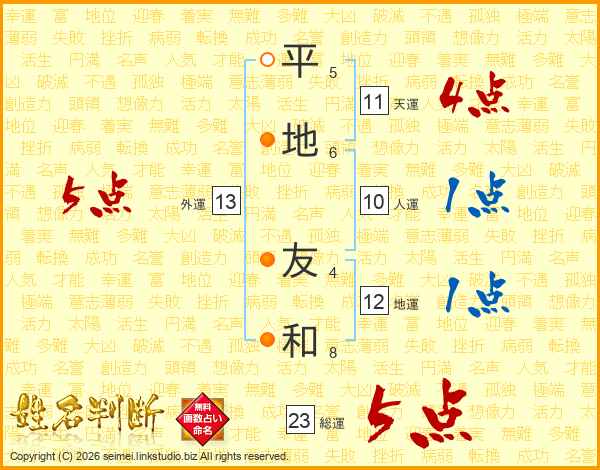 平地友和さんの総運は23画の5点!