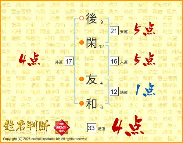 後閑友和さんの天運は21画の5点!