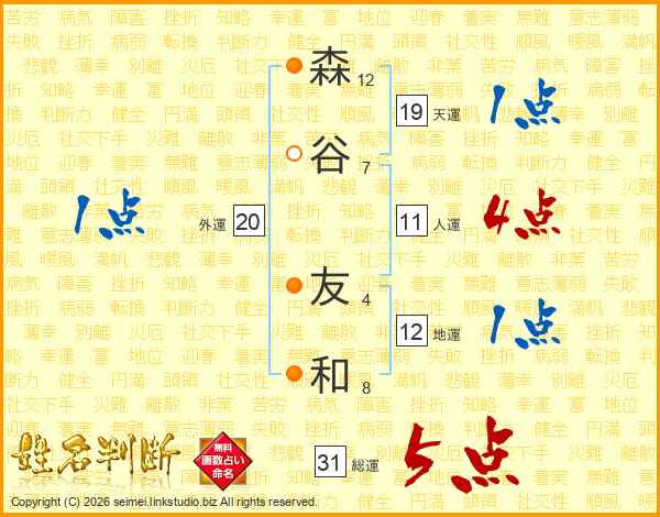森谷友和さんの人運は11画の4点!