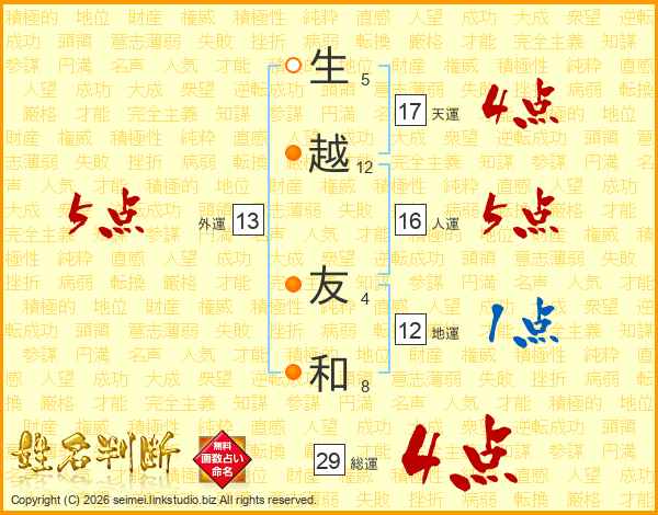 生越友和さんの天運は17画の4点!
