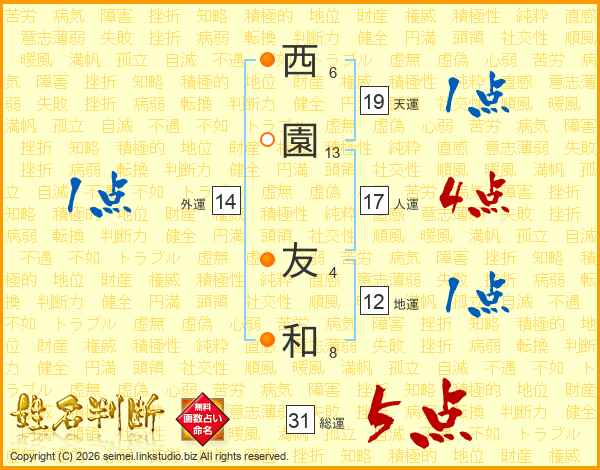西(6画)園(13画) 友(4画)和(8画)